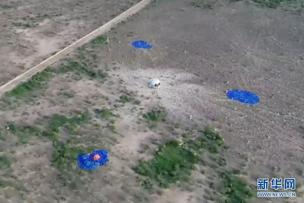 這張美國藍色起源公司7月20日發(fā)布的視頻截圖顯示“新謝潑德”飛行器在美國得克薩斯州西部著陸。