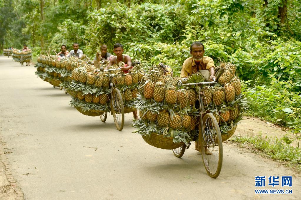 7月25日,農民在孟加拉國坦蓋爾運輸收獲的菠蘿。