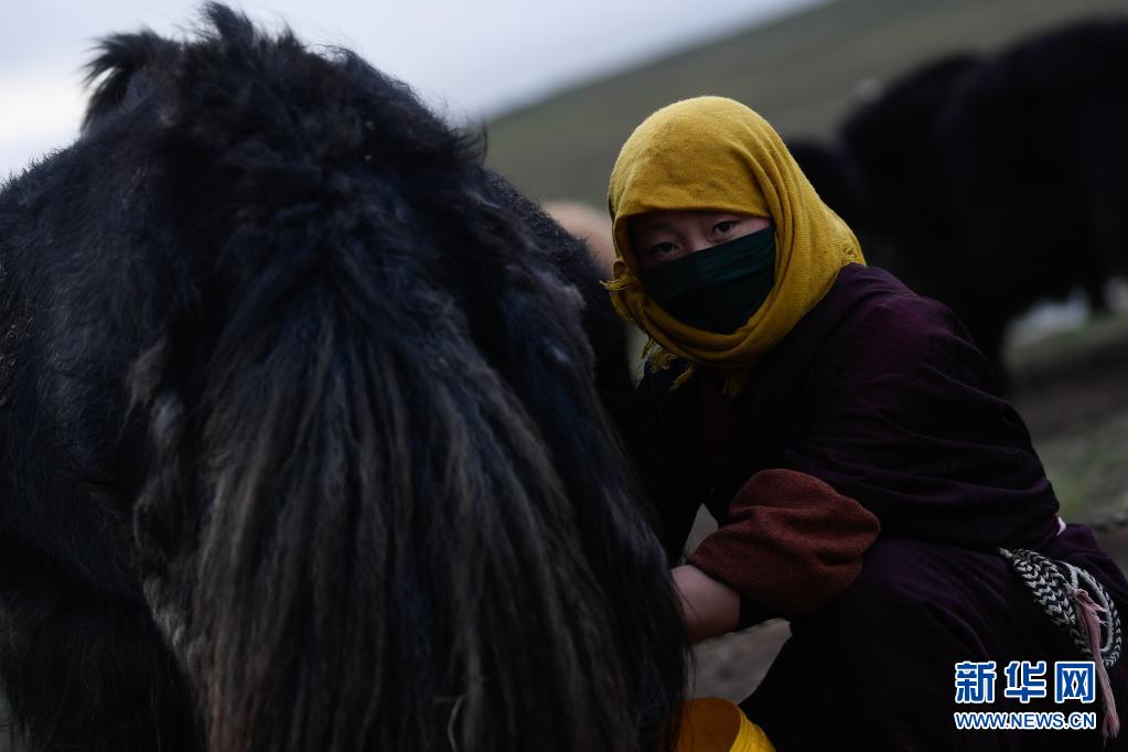 8月3日,在瑪沁縣當(dāng)洛鄉(xiāng)貢龍村的夏季草場(chǎng)上,牧民在擠奶。