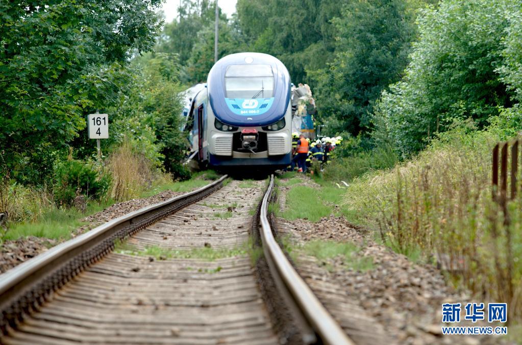 這是8月4日在捷克比爾森州拍攝的火車相撞事故現場。