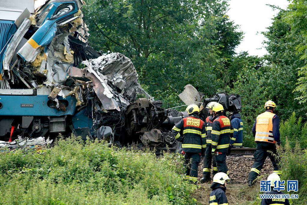 8月4日,救援人員在捷克比爾森州的火車相撞事故現(xiàn)場(chǎng)工作。