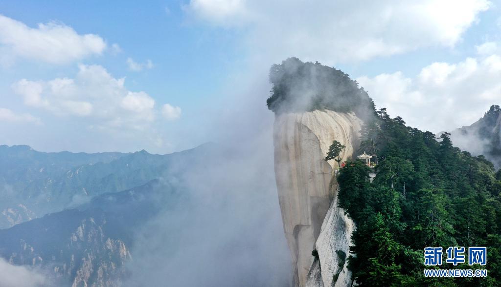 8月14日,云霧中的西岳華山風(fēng)光(無(wú)人機(jī)照片)。