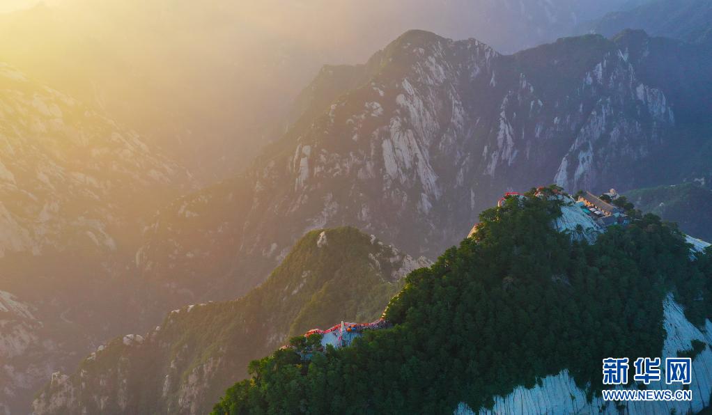 霞光映照下的華山(8月15日攝,無人機照片)。