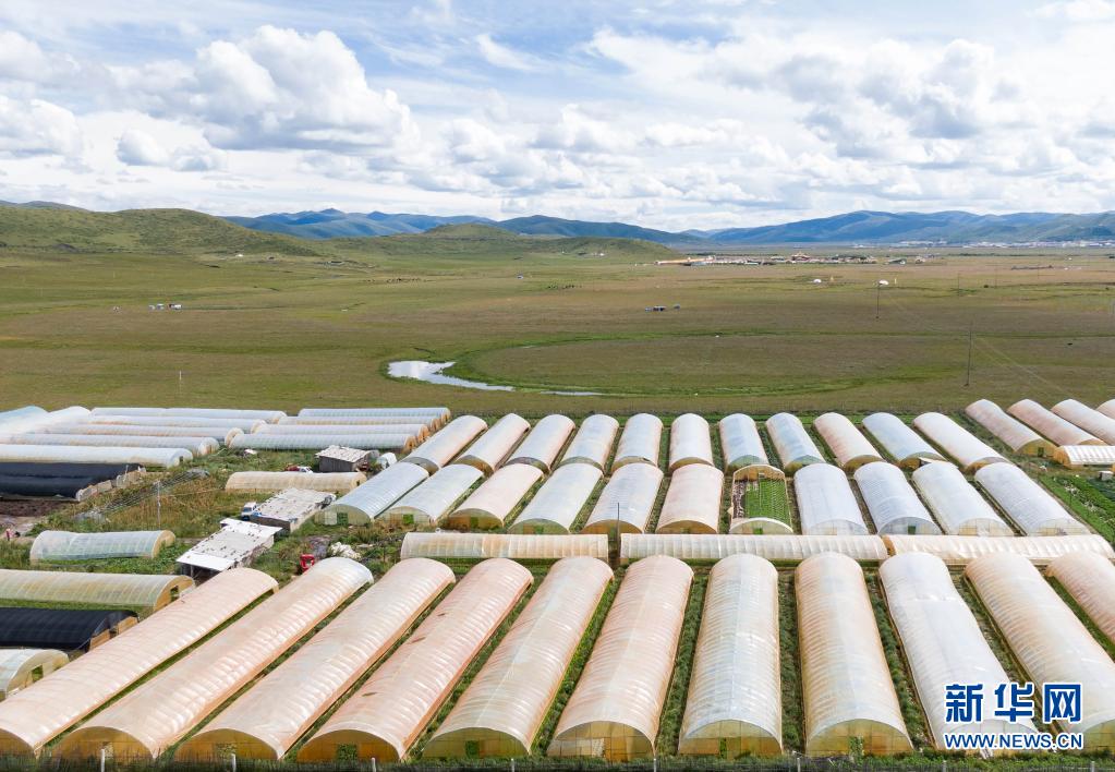這是四川省阿壩藏族羌族自治州紅原縣邛溪鎮熱坤村的蔬菜大棚(8月13日攝,無人機照片)。