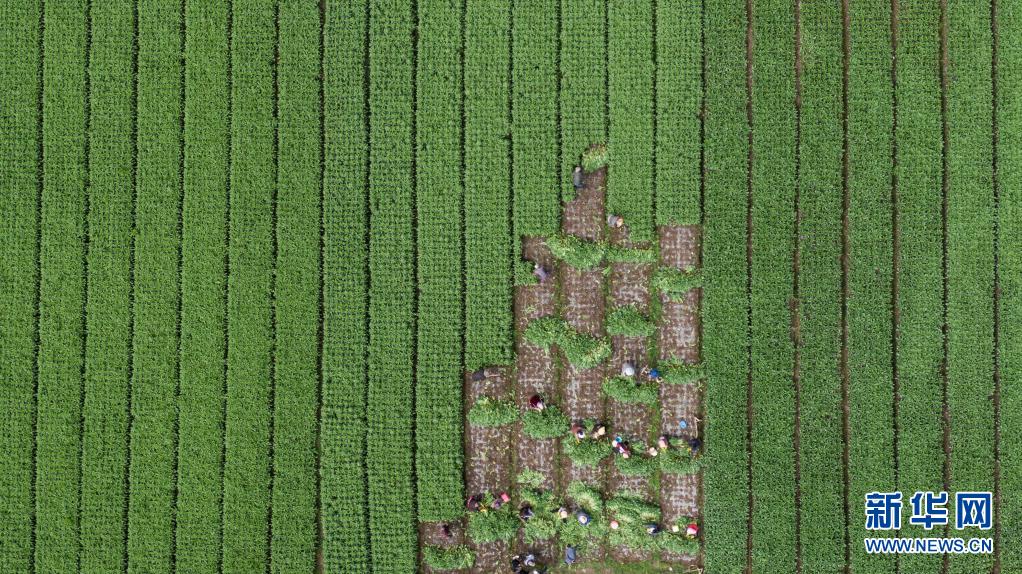 8月13日,在四川省阿壩藏族羌族自治州紅原縣刷經(jīng)寺鎮(zhèn)加當(dāng)村,當(dāng)?shù)厝罕娫谑崭罡咴n筍(無(wú)人機(jī)照片)。