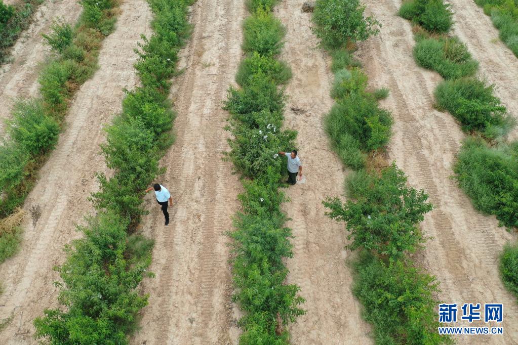 8月18日,方志利(左)和村民在桃園里勞作。新華社記者 杜哲宇 攝