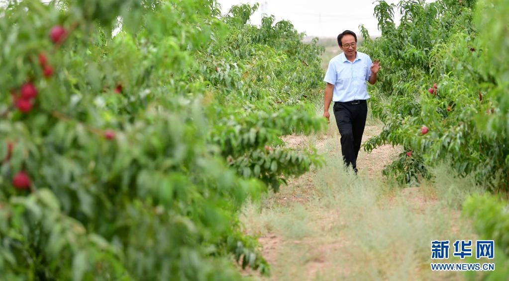 8月18日,方志利在查看桃子生長情況。新華社記者 陳斌 攝