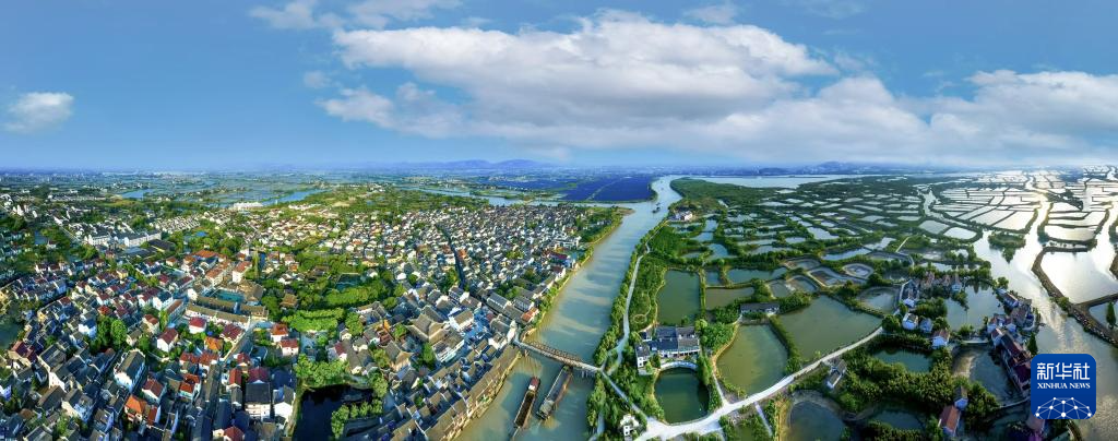 这是2024年8月拍摄的浙江省湖州市南浔区和孚镇荻港村全景(无人机照片)。