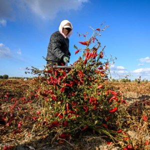 近日,内蒙古通辽市开鲁县迎来红干椒收获季。开鲁县享有“中国红干椒之都”之美誉,当地的红干椒皮红肉厚、品质优良,畅销国内外市场,近年来全县红干椒种植面积稳定在60万亩。