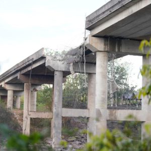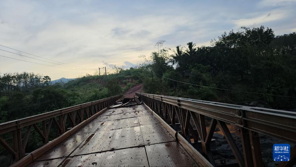 这是12月13日拍摄的柬埔寨菩萨省边境地区遭到泰军轰炸的桥梁。