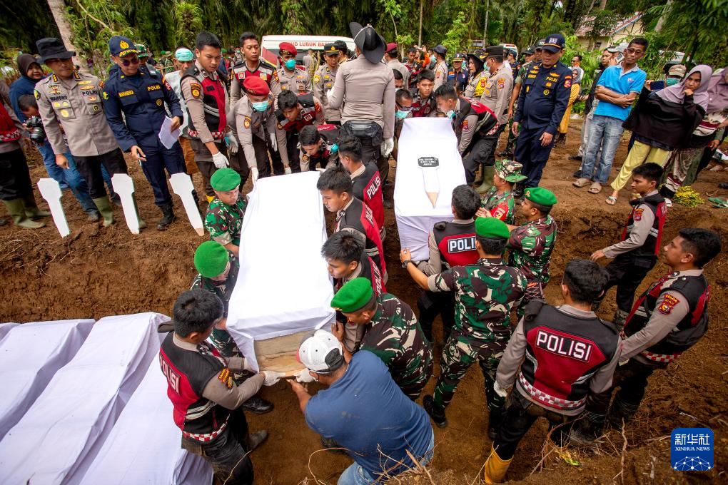 12月11日,在印度尼西亚西苏门答腊省,警察为遇难者举行集体葬礼。