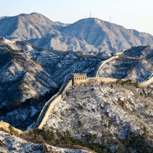 12月13日在河北省遵化市拍摄的古长城雪景(无人机照片)。