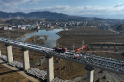 11月27日,在湖北十堰神定河特大桥上,西安至十堰高速铁路(简称“西十高铁”)全线最后一对长钢轨铺设落地,标志着西十高铁全线铺轨工程顺利完工,为后续联调联试奠定基础。