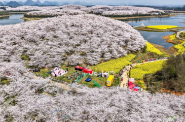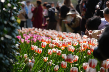 花田美地景区是浙江省金华市武义县王宅镇的特色乡村旅游项目。近日,景区花海进入盛花期,金黄色的油菜花与粉色樱花、多彩郁金香等共同构成春日美丽画卷,吸引游客前来打卡游玩。