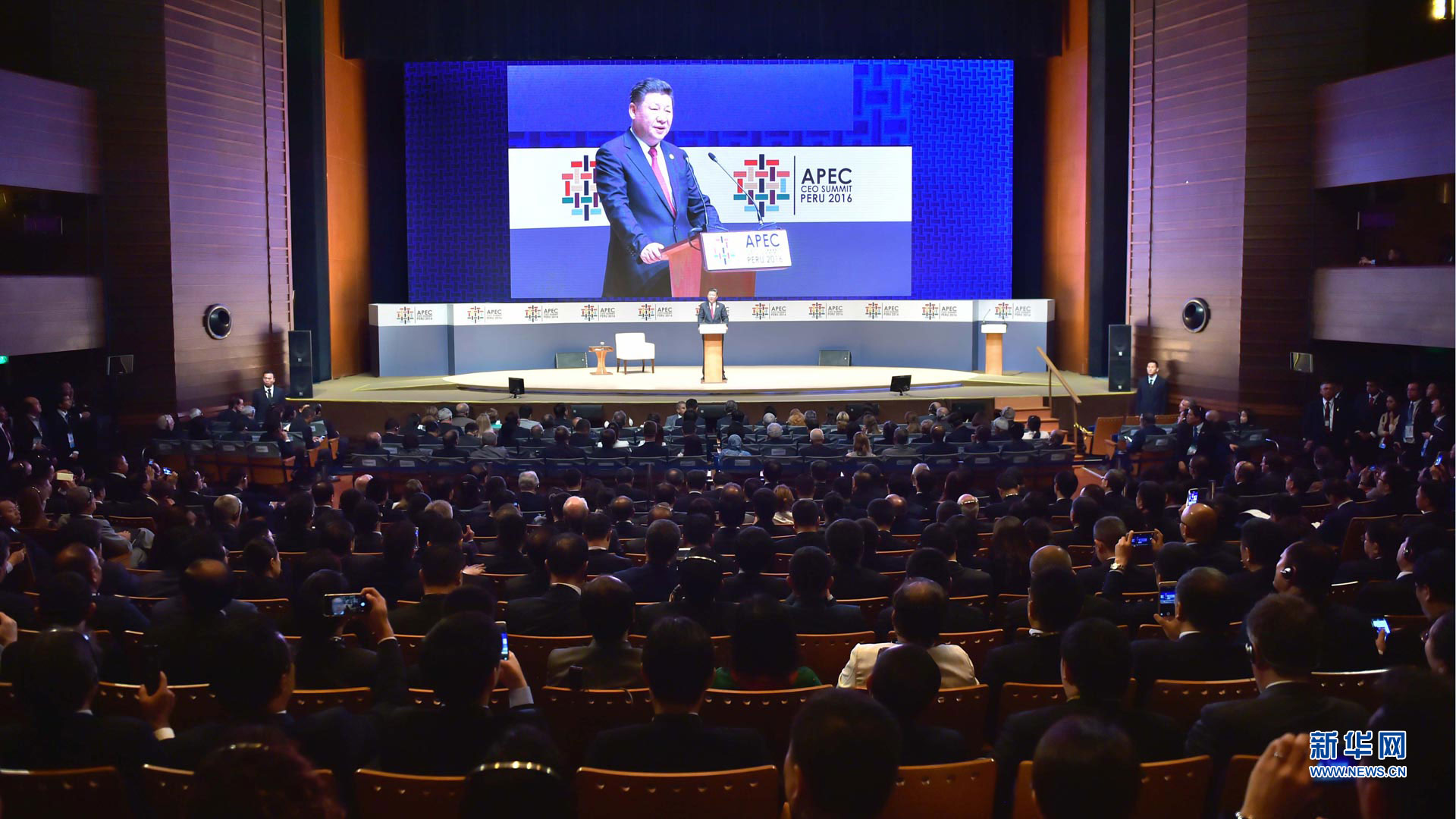 11月19日,2016年亞太經合組織工商領導人峰會在秘魯利馬舉行。國家主席習近平應邀出席并發表題為《深化伙伴關系 增強發展動力》的主旨演講。 新華社記者 蘭紅光 攝2016-11-20