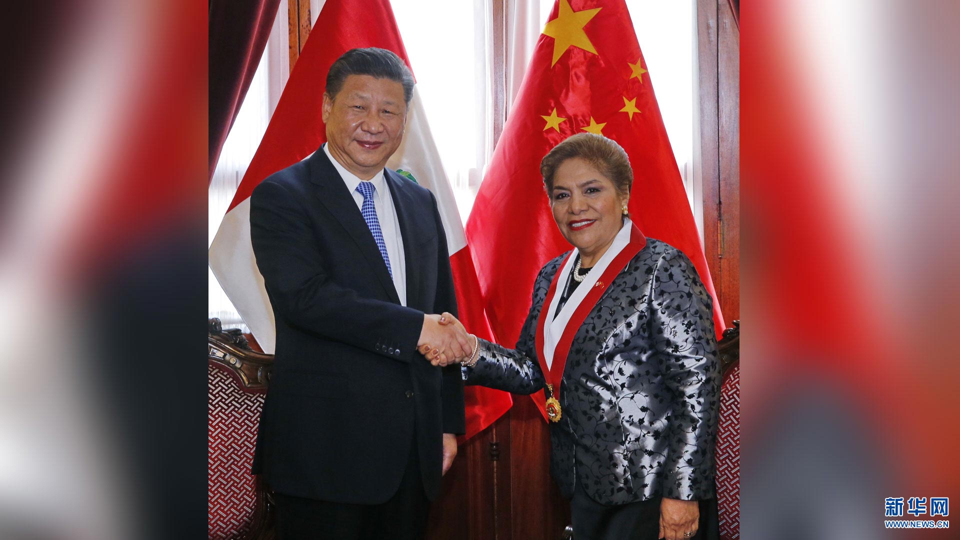 11月21日,國家主席習近平在利馬會見秘魯國會主席薩爾加多。新華社記者 鞠鵬 攝2016-11-23