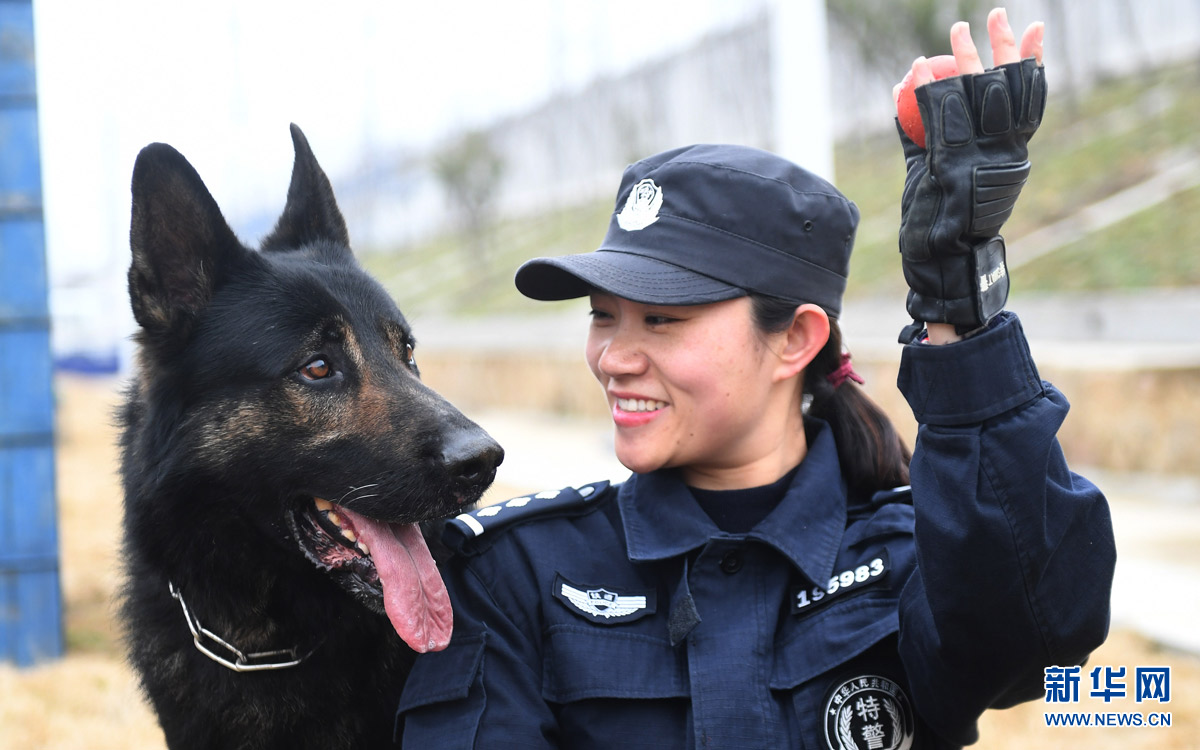 2月5日,劉慧和“威利”在警犬基地訓練。新華社記者 程敏 攝