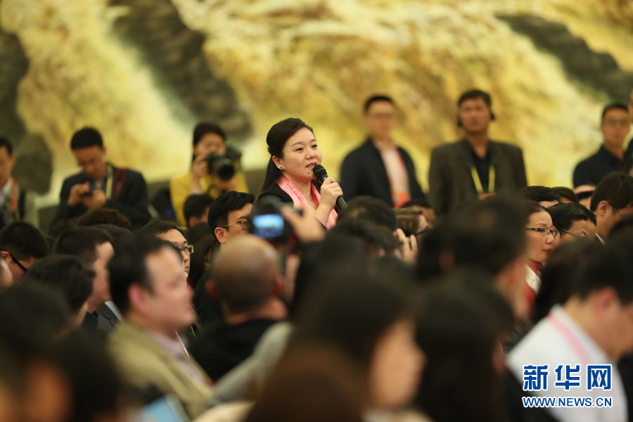 2017年10月17日下午,中國(guó)共產(chǎn)黨第十九次全國(guó)代表大會(huì)新聞發(fā)言人在人民大會(huì)堂三樓金色大廳舉行新聞發(fā)布會(huì),并回答中外記者提問。圖為新華社記者提問。新華網(wǎng) 翟子赫 攝