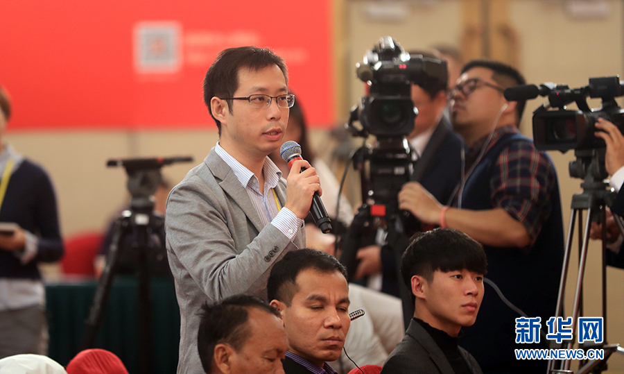 10月19日,十九大新聞中心舉行記者會,邀請中紀委、中組部負責人介紹黨的建設和全面從嚴治黨相關情況。圖為中國日報、中國日報網記者提問。新華網 郝廣鵬攝