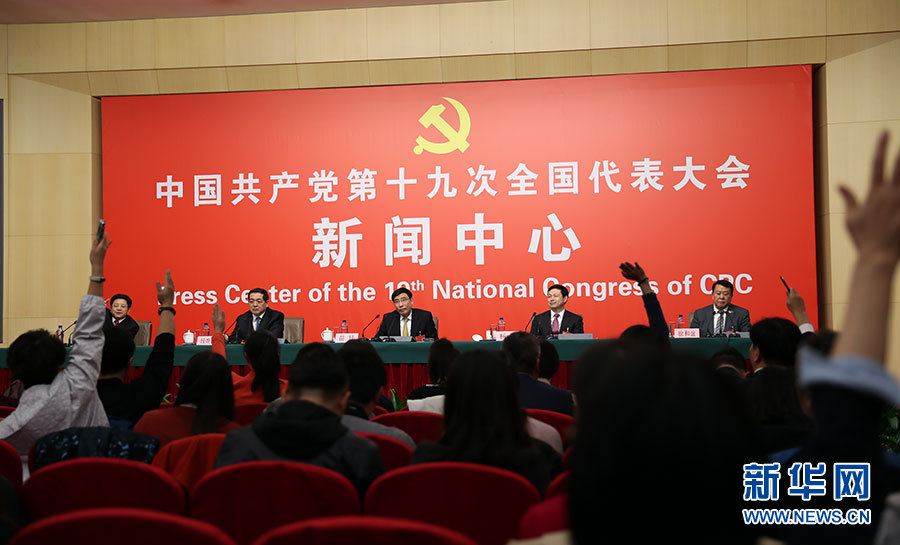 ??? 10月19日,十九大新聞中心舉辦集體采訪,邀請工信和通訊領域代表談走新型工業(yè)化道路。圖為集體采訪活動現(xiàn)場。新華網(wǎng) 郝廣鵬攝