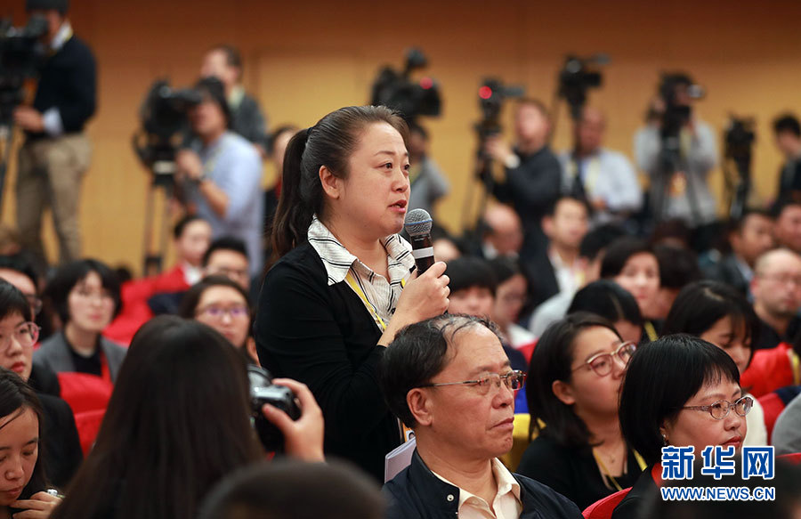 ??? 10月20日,十九大新聞中心舉行記者會,邀請中宣部、中央文明辦、文化部、新聞出版廣電總局相關(guān)負(fù)責(zé)人介紹加強思想道德和文化建設(shè)情況,并回答記者提問。圖為中央人民廣播電臺記者提問。新華網(wǎng) 郝廣鵬 攝