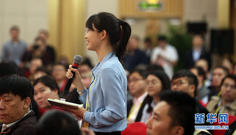 ???? 10月21日,十九大新聞中心舉辦記者招待會(huì),邀請(qǐng)中共中央統(tǒng)戰(zhàn)部常務(wù)副部長張裔炯、副部長冉萬祥,中共中央對(duì)外聯(lián)絡(luò)部副部長郭業(yè)洲介紹黨的統(tǒng)一戰(zhàn)線工作和黨的對(duì)外交往情況,并回答記者提問。圖為中央人民廣播電臺(tái)記者提問。新華網(wǎng) 郝廣鵬攝