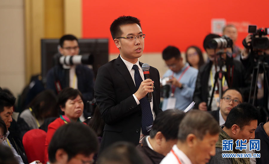 10月21日,十九大新聞中心舉辦記者招待會,邀請中共中央統(tǒng)戰(zhàn)部常務副部長張裔炯、副部長冉萬祥,中共中央對外聯(lián)絡部副部長郭業(yè)洲介紹黨的統(tǒng)一戰(zhàn)線工作和黨的對外交往情況,并回答記者提問。圖為中央電視臺、中國國際電視臺記者提問。新華網(wǎng) 郝廣鵬攝