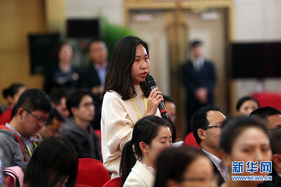 10月22日,十九大新聞中心在梅地亞中心二層新聞發布廳舉辦集體采訪活動,邀請教育領域代表談“教育綜合改革”。圖為中國新聞社、中國新聞網記者提問。新華網 郝廣鵬攝
