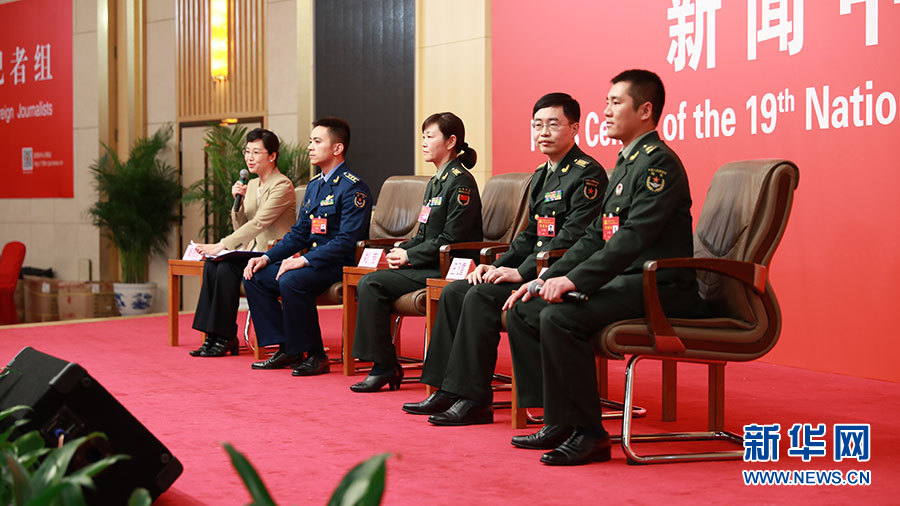 10月22日,十九大新聞中心在梅地亞中心二層新聞發布廳舉辦集體采訪活動,主題為“中國特色強軍之路邁出堅定步伐”。圖為集體采訪活動現場。新華網 郝廣鵬攝