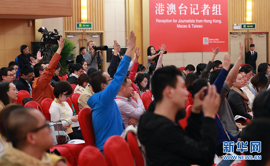 10月23日,十九大新聞中心舉辦集體采訪活動,主題為“打好生態環保攻堅戰”。圖為現場記者踴躍舉手提問。新華網 郝廣鵬攝