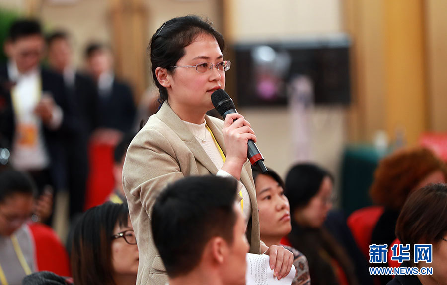 10月23日,十九大新聞中心舉辦集體采訪活動,主題為“打好生態環保攻堅戰”。圖為香港紫荊雜志社記者提問。新華網 郝廣鵬攝