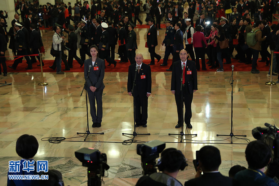 10月24日大會閉幕會后,人民大會堂舉辦“黨代表通道”第三場采訪活動。圖為黨代表接受采訪。新華網(wǎng)記者 翟子赫 攝