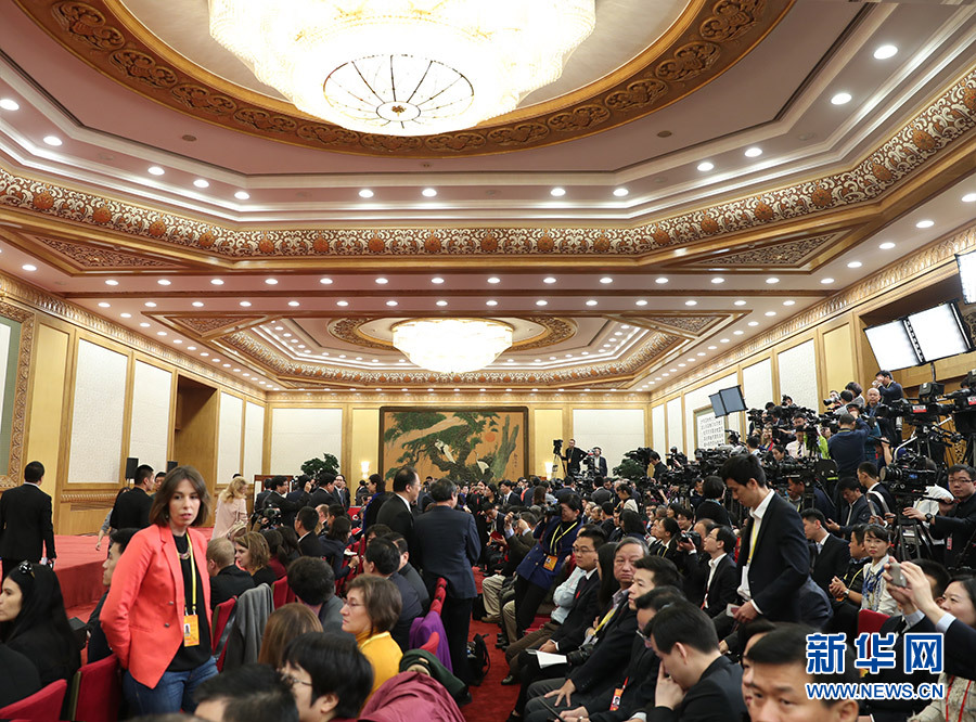 中外記者在見面會現場進行準備工作-新華網
