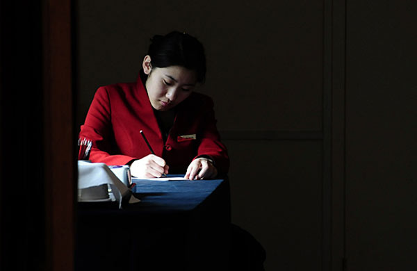 3月1日,人民大會堂工作人員正在進行緊張的會前準(zhǔn)備。第十一屆全國人民代表大會第四次會議、全國政協(xié)十一屆四次會議即將開幕。