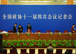 [新華網、中國政府網現場報道]2011年3月8日10時,全國政協十一屆四次會議在人民大會堂三樓大廳舉行記者會,主題是“推進基本公共服務體系建設,保障和改善民生”。全國政協委員鄭新立、宋曉梧、邵鴻、吳明江、于煉出席并回答記者的提問。新華網、中國政府網全程直播此次記者會,敬請關注! [2011-03-08 09:11:40] |
