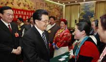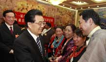 全國兩會少數民族代表委員茶話會在京舉行 胡錦濤等出席