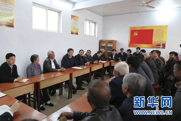 ??? 3月17日,習(xí)近平在東壩頭鄉(xiāng)張莊村村委會與干部群眾座談,聽取意見和建議。新華社記者丁林攝