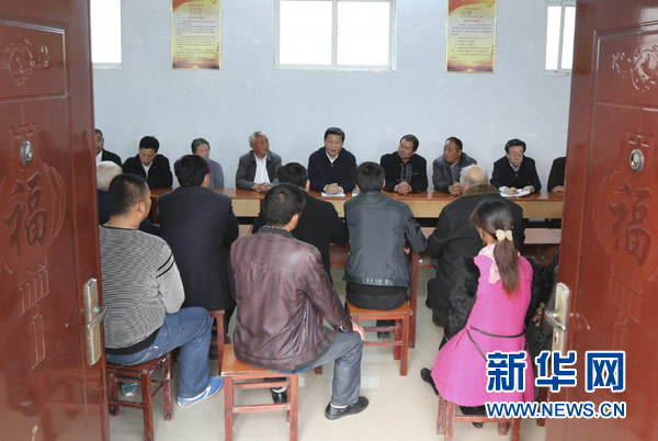 ??? 3月17日,習(xí)近平在東壩頭鄉(xiāng)張莊村村委會與干部群眾座談,聽取意見和建議。 新華社記者李學(xué)仁攝