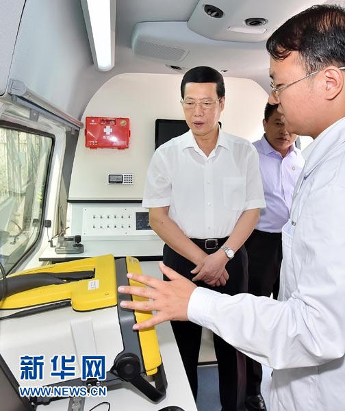 ??? 6月5日,中共中央政治局常委、國務(wù)院副總理張高麗到中國環(huán)境科學研究院和中國環(huán)境監(jiān)測總站調(diào)研。這是張高麗在水質(zhì)應(yīng)急監(jiān)測車上了解水質(zhì)監(jiān)測預(yù)警工作情況。新華社記者 李濤 攝