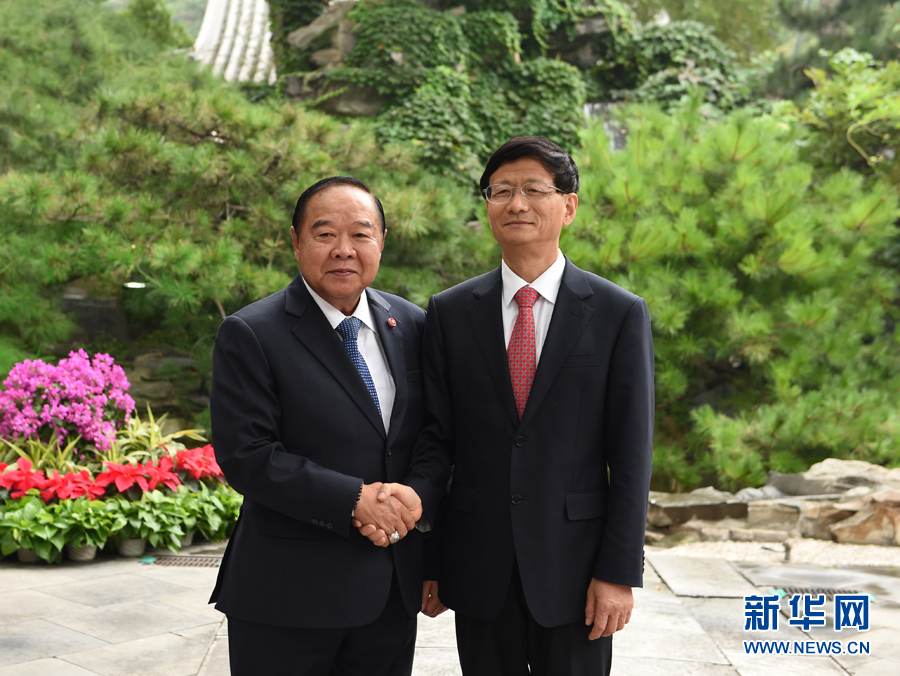 ??? 9月4日,中共中央政治局委員、中央政法委書記孟建柱在北京釣魚臺(tái)國賓館會(huì)見泰國第一副總理兼國防部長(zhǎng)巴維。 新華社記者高潔攝