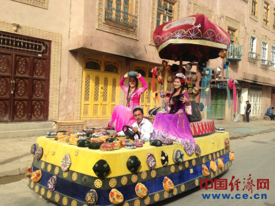 現年50歲的買買提?依明是一個土陶巴扎經營者,說起這座老城的變化,他感慨萬千:“你們猜猜這個房子有多少年了”,記者們表示不知道,“300年了,我們家在這5代人哩”,買買提?依明說,原來的房子很小,巷子也很窄,家里開了個旅舍,人多的時候還要打地鋪,生意也不好。后來房屋改造,在自家原址上蓋了新房,全家人高興得不得了,自己花了15萬裝修,整修一新的房屋讓旅舍又紅紅火火的開了起來,大兒子大學畢業后已經回來幫忙,小兒子還在重慶讀大學。依明說,當初改造的時候政府讓我們選擇,可以搬出去住樓房,也可以留在這,街坊鄰居們很少有搬走的,現在我周圍還是那些老朋友。說起自己覺得裝修貴不貴,依明說:“政府花了那么多錢給我們蓋房子,我們自己花一點也是應該的,感謝政府給我們這么好的生活。”