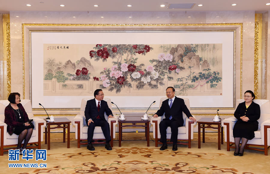 ??? 11月2日,中共中央書記處書記、全國政協(xié)副主席、中國經(jīng)濟社會理事會主席杜青林在北京會見臺灣非營利組織代表大陸交流團。 新華社記者 張領攝