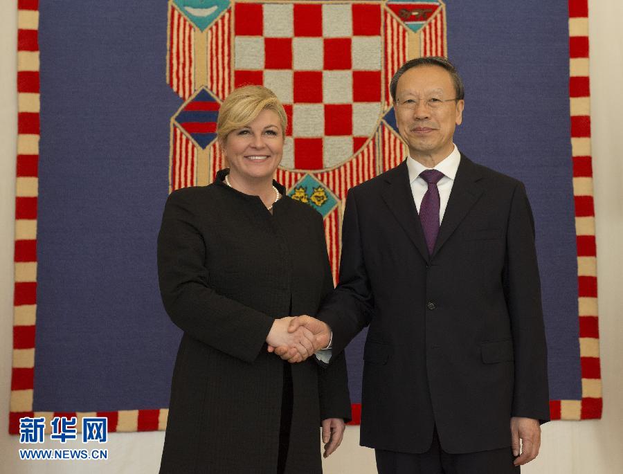 ??? 11月13日,在位于克羅地亞薩格勒布的總統府,克羅地亞總統基塔羅維奇(左)和中共中央書記處書記、全國政協副主席杜青林握手。正在克羅地亞訪問的中共中央書記處書記、全國政協副主席杜青林13日在薩格勒布分別會見了克羅地亞總統基塔羅維奇和議長萊科。新華社發(米紹·利沙寧攝)