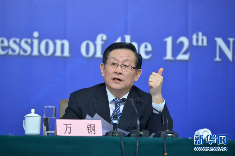 ??? 十二屆全國人大三次會議新聞中心于3月11日10時45分舉行記者會,邀請科技部部長萬鋼就科技改革與發展回答中外記者提問。圖為萬鋼回答記者提問。新華網/中國政府網 郭小天 攝