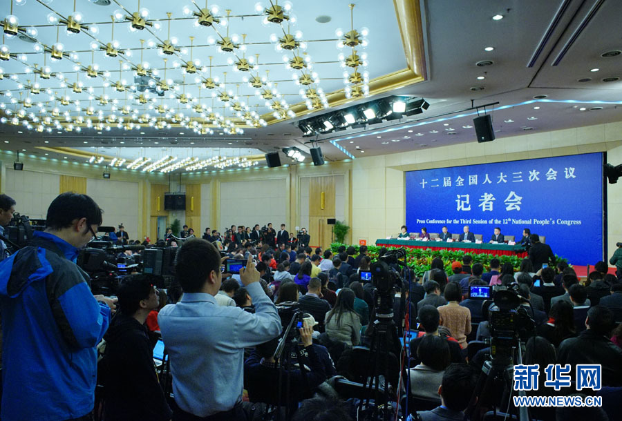 ????十二屆全國人大三次會議新聞中心于3月12日在梅地亞中心多功能廳舉行記者會,邀請中國人民銀行行長周小川,中國人民銀行副行長、國家外匯管理局局長易綱,中國人民銀行副行長潘功勝,絲路基金有限責任公司董事長金琦就金融改革與發(fā)展回答中外記者提問。圖為記者會現(xiàn)場。新華網(wǎng)/中國政府網(wǎng) 郭小天攝