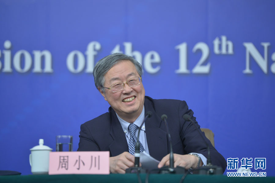 ????十二屆全國人大三次會議新聞中心于3月12日在梅地亞中心多功能廳舉行記者會,邀請中國人民銀行行長周小川,中國人民銀行副行長、國家外匯管理局局長易綱,中國人民銀行副行長潘功勝,絲路基金有限責任公司董事長金琦就金融改革與發展回答中外記者提問。圖為中國人民銀行行長周小川回答記者提問。新華網/中國政府網 郭小天攝