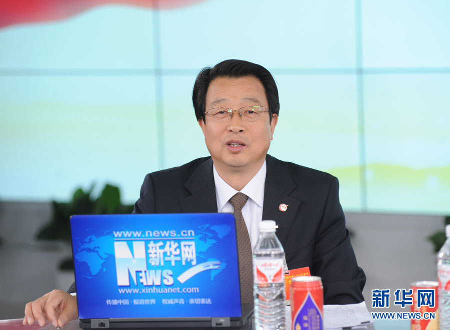 2015年3月13日,全國人大代表、中航飛機股份有限公司總經(jīng)理唐軍做客新華網(wǎng),就航空制造業(yè)面臨的機遇和挑戰(zhàn)與廣大網(wǎng)友展開交流。圖為唐軍解答網(wǎng)友問題。 新華網(wǎng) 陳競超 攝