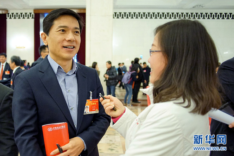 3月13日,全國政協十二屆三次會議在北京人民大會堂舉行閉幕會。圖為政協委員李彥宏接受本網記者采訪。新華網/中國政府網?郭小天 攝