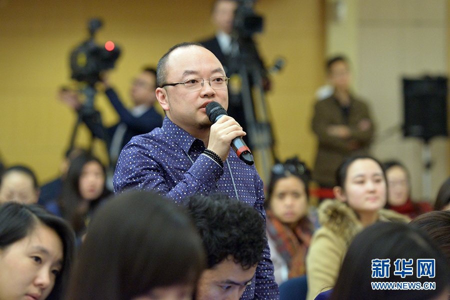 ????3月13日上午10時,十二屆全國人大三次會議新聞中心邀請四川大學(xué)校長謝和平、江蘇省教育廳廳長沈健、廣東省教育廳廳長羅偉其、海南大學(xué)校長李建保、貴州大學(xué)校長鄭強就完善高等教育治理結(jié)構(gòu)的相關(guān)問題回答中外記者提問。圖為法制日報、法制網(wǎng)記者提問。新華網(wǎng)/中國政府網(wǎng) 郭小天 攝