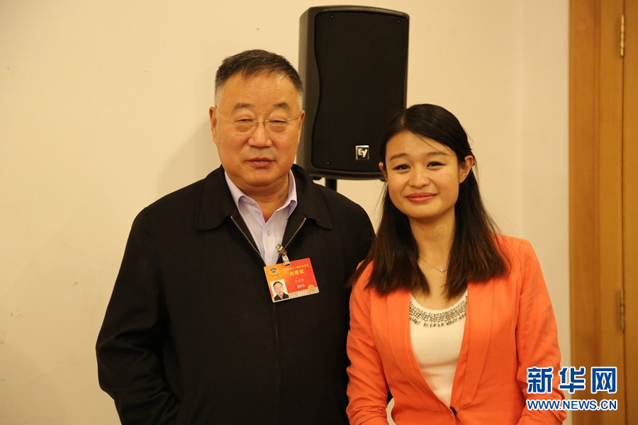 ????2015年3月15日,全國政協委員、中科院院士、氣象學會理事長秦大河做客新華網2015全國兩會特別訪談。圖為主持人與秦大河合影。